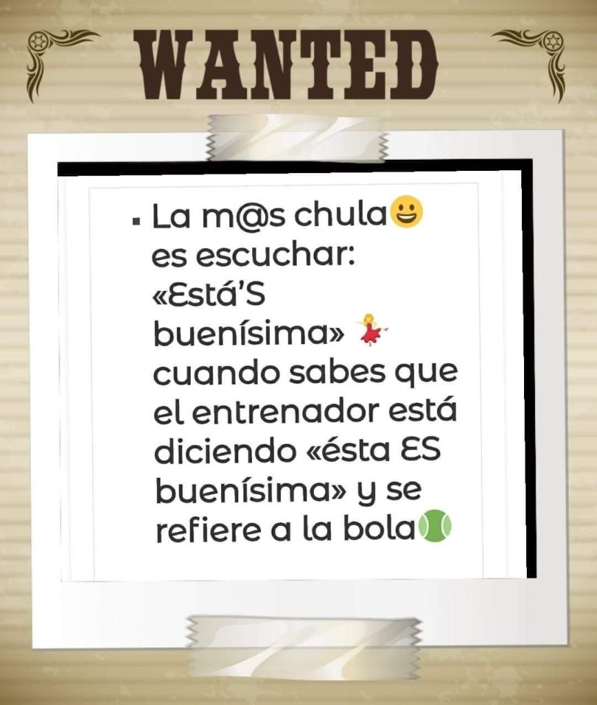 ¿El mejor cumplido? Escuchar al entrenador que te hace clase particular decir cada poco rato «Está’s buenísima» cuando sabes que ha dicho «Ésta ES buenísima» y se refería a la bola.